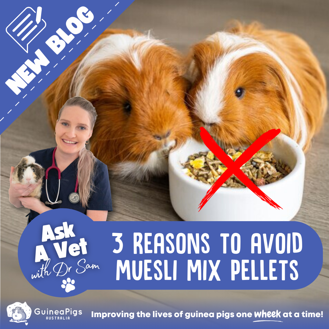 Hi everyone, I'm Dr Sam a small animal veterinarian, and today I will be talking about my top 3 reasons why I generally DO NOT recommend muesli based mixes for our little piggies.