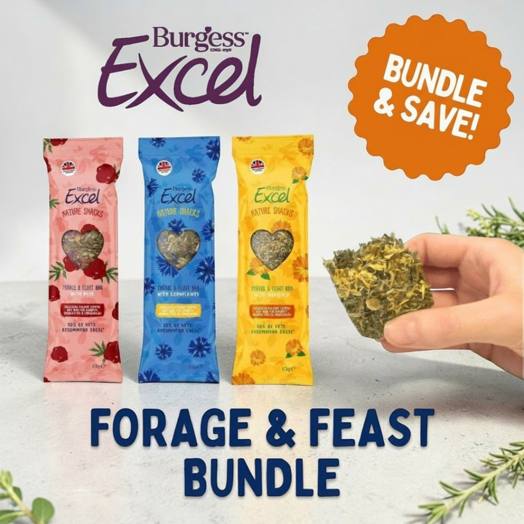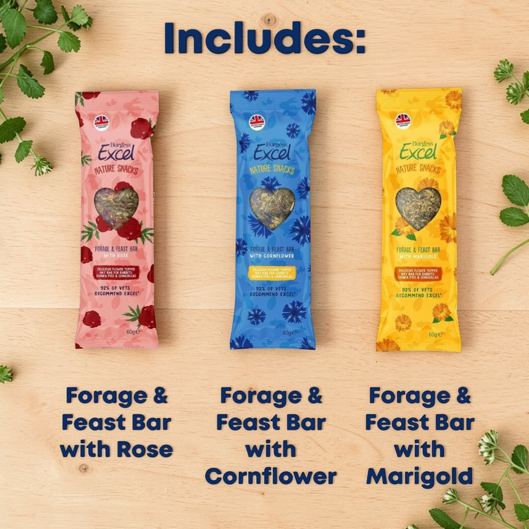 Spoil your pets with the ultimate treat bundle from Burgess Excel! Bundle and save on our 3 delicious Forage and Feast Bars. Great for enrichment, foraging and snack time!