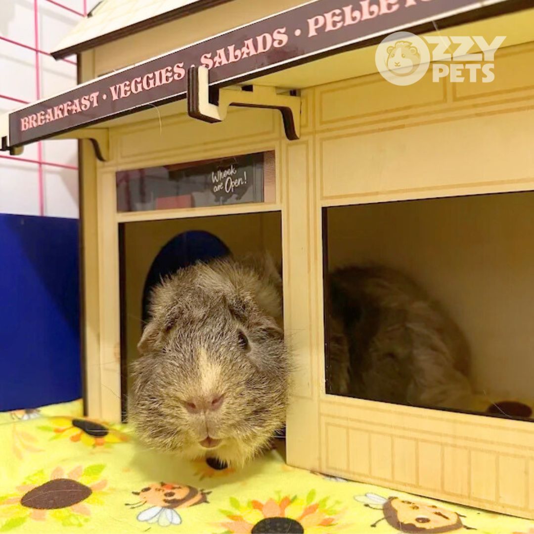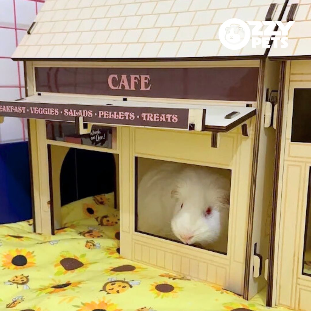 Sip your coffee, share a treat, and watch your guinea pigs enjoy a peaceful pause from the bustle of their busy little lives with the Guinea Pig Café.