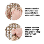 • Versatile Enrichment – Hang it up long ways or short ways! The Playwall comes with wooden screws to fasten it securely to the side of your pets' cage.