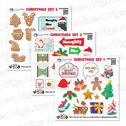 Transform your guinea pig’s area into a Christmas Wonderland with our Limited Edition reusable decals! The Ozzy Decos Christmas Set 3 has a cheeky selection of Christmas decals that will take your piggies' cage to Insta-worthy status this festive season!
